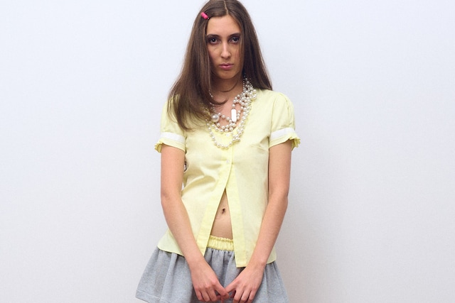 Lucila Safdie, the Buenos Aires born-and-raised and London-based fashion designer, is not only familiar with this digital world of deified feminine tragedy, but an active participant in it. Attending a film high school throughout her teen years, she cultivated an interest in fashion simply by being chronically online before everyone else was. Fashion blogging was big in the 2010s. This was especially true on Tumblr, where the girlblogging community embraced a darker, grungier side to femininity while simultaneously celebrating the delicate and tender. The Tumblr girls’ love for Sky Ferreira and Lana Del Rey; their passion for dark, smudged makeup; and their fever for the coquettish symbols of lace, frills, bows, and the color pink, syncretized the fragility of female adolescence with the angst and confusion felt during our vulnerable teenage years. Safdie admitted to Interview Magazine that she used Tumblr throughout her high school and continues to post on the platform, using it as an anonymous diary. Like a diary, Safdie uses her designs to convey intimacies about the teenage-girl experience: rebellion and bucking against parental and social policing, the vulnerabilities of youth, and the vagaries of an adolescent identity.